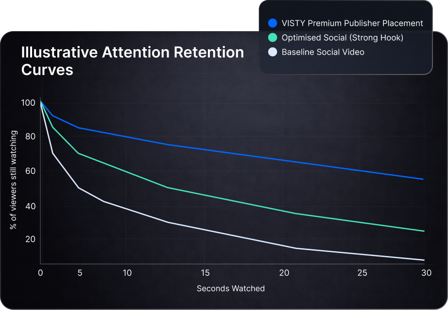 This is the VISTY advantage: your video sits where attention lives, not where it dies